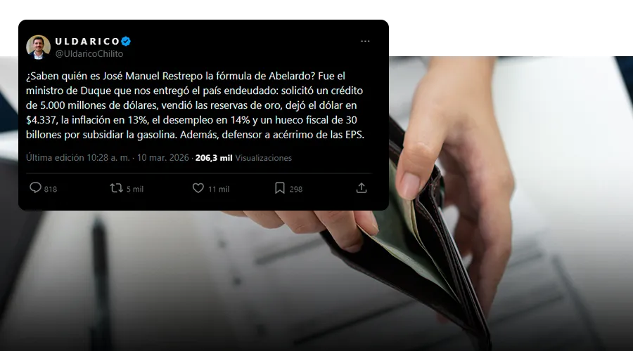 • Falso: Um tweet viral usa dados fora de contexto para questionar a gestão de Restrepo no Ministério das Finanças.