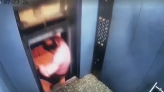 Verificado: É #FATO: Homem escapa de ser esmagado ao sair de elevador na Índia; assista ao vídeo