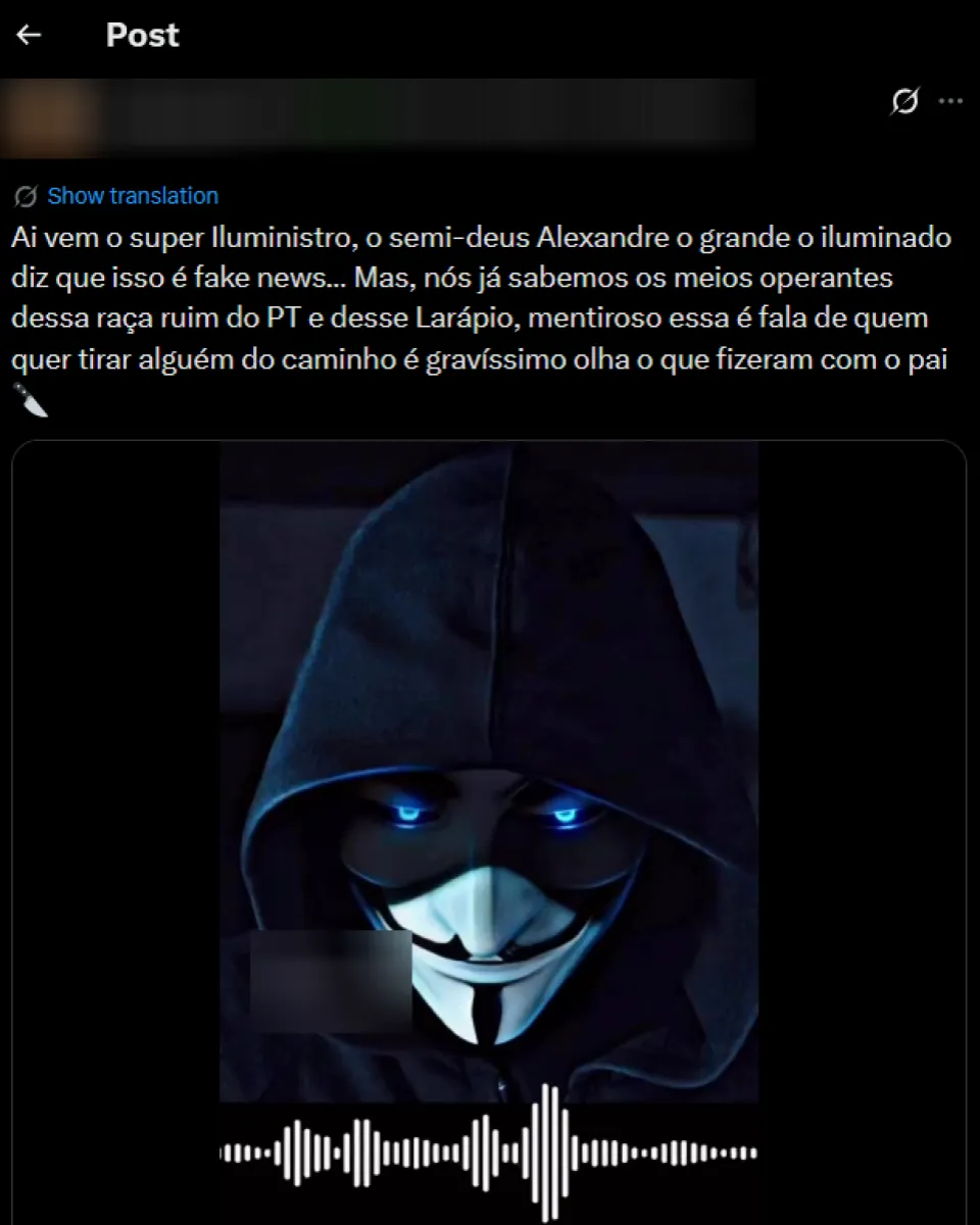 Apurado pelo site Aos Fatos Não é verdade que o ministro do STF (Supremo Tribunal Federal) Alexandre de Moraes disse em áudio que pretende acabar com o “vocabulário golpista dos evangélicos”. Além da corte ter negado que a voz seja do magistrado, Aos Fatos analisou o áudio e verificou que a voz não é de… Continuar lendo Falso: Áudio sobre proibição de ‘vocabulário evangélico’ não foi gravado por Moraes