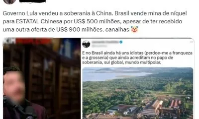 Apurado pelo site E-Farças Brasil teria vendido mina de níquel para estatal chinesa por U$500 milhões após recusar oferta de 900 milhões! Será que isso é verdade? A notícia se espalhou nas redes sociais no final de agosto de 2025 e afirma que o Brasil teria vendido uma grande mina de níquel para a China… Continuar lendo Falso: O Governo Federal vendeu minas de níquel para a China por U$500 milhões?