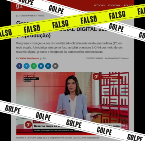Apurado pelo site Lupa Uma página com o logotipo do g1, cujo link é compartilhado nas redes sociais, alega que o governo federal juntamente com os Detrans dos estados haviam lançado o programa CNH Social Digital 2025, cujo objetivo seria ampliar o acesso à Carteira Nacional de Habilitação (CNH) a partir de um sistema digital,… Continuar lendo Falso: É golpe página que promete acesso à ‘CNH Social Digital 2025’