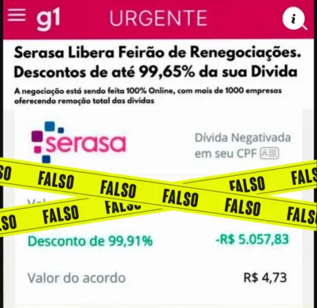 Falso: Feirão Limpa Nome da Serasa já foi encerrado; posts promovem fraudes