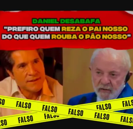 Apurado pelo site Lupa Circula no Instagram um vídeo afirmando que o cantor Daniel disse que prefere “um presidente que reze o Pai Nosso do que um que roube o pão nosso”. A suposta fala tem sido compartilhada alegando que o artista estaria se posicionando contra o presidente Lula (PT) e defendendo, assim, o ex-chefe… Continuar lendo Falso: Não há registro sobre pronunciamento contra Lula atribuído ao cantor Daniel