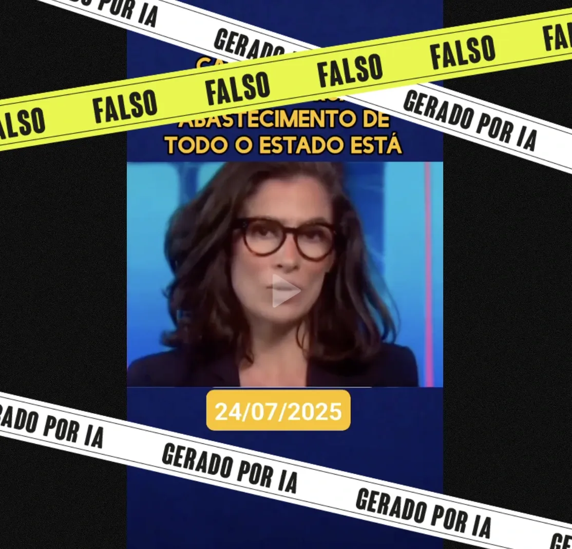 Apurado pelo site Lupa Circula no Kwai um vídeo supostamente gravado em 24 de julho deste ano em que a apresentadora do Jornal Nacional, Renata Vasconcellos, alertou que o estado de São Paulo poderia parar nas próximas horas devido a uma greve dos caminhoneiros. Segundo o registro, a categoria fechou vias importantes e o abastecimento… Continuar lendo Falso: É IA vídeo de Renata Vasconcellos sobre greve de caminhoneiros em SP