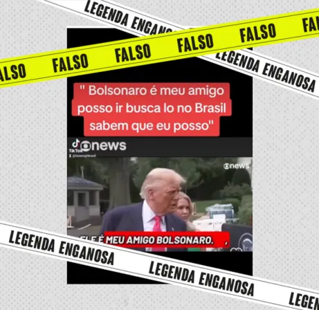 Apurado pelo site Lupa Vídeo que circula no Instagram sugere que o presidente dos Estados Unidos, Donald Trump, teria dito ser amigo do ex-presidente Jair Bolsonaro (PL) e que poderia vir ao Brasil a qualquer momento para buscá-lo. A gravação mostra uma entrevista em inglês do republicano e é acompanhada de um letreiro que supostamente… Continuar lendo Falso: Trump não disse ser amigo de Bolsonaro nem que virá buscá-lo