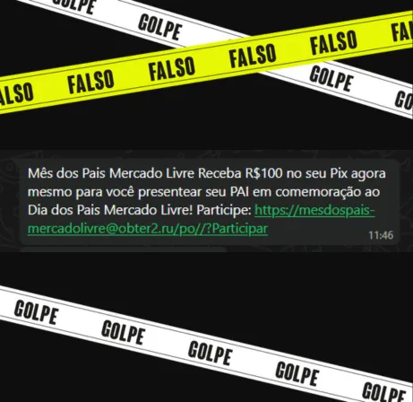 Apurado pelo site Lupa Circula no WhatsApp uma mensagem afirmando que o Mercado Livre está distribuindo um Pix de R$ 100 em comemoração ao Dia dos Pais. É falso. Trata-se de um golpe. Por WhatsApp, leitores sugeriram que o conteúdo fosse analisado. Confira a seguir o trabalho de verificação da Lupa: Mês dos Pais Mercado… Continuar lendo Falso: Mercado Livre não oferece Pix de R$ 100 para Dia dos Pais; site é golpe