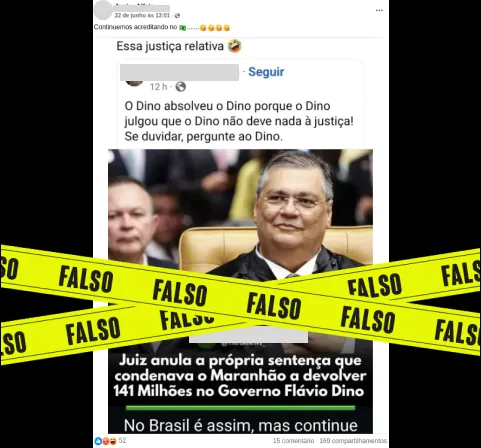 Falso: Dino não anulou sentença em benefício próprio; decisão é de juiz federal