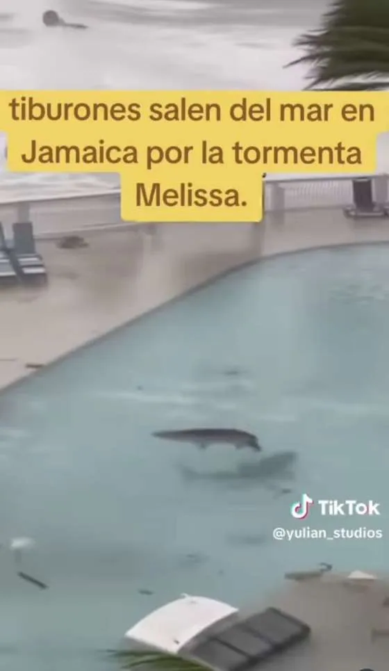 Falso: Furacão Melissa arrasta tubarões para piscina na Jamaica?