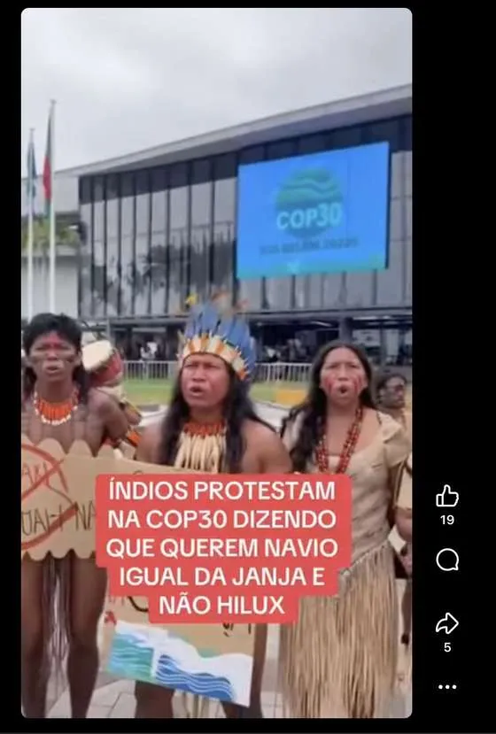 Verificado: Grupo de indígenas pede na COP30 um navio igual ao de Janja?