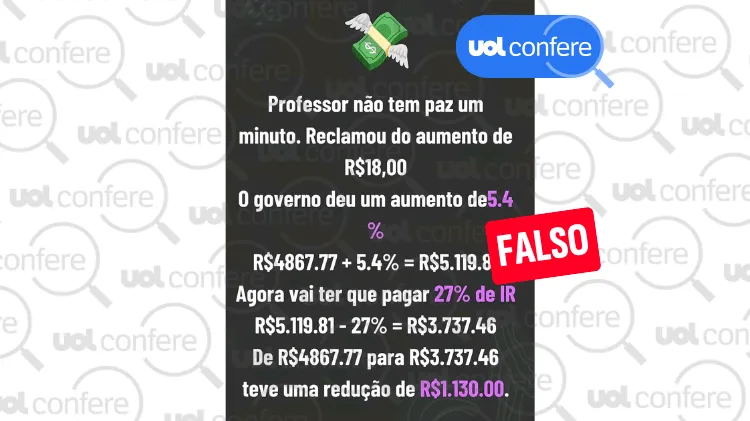 Falso: É falso que após reajuste de 5,4% professores terão que pagar 27% de IR