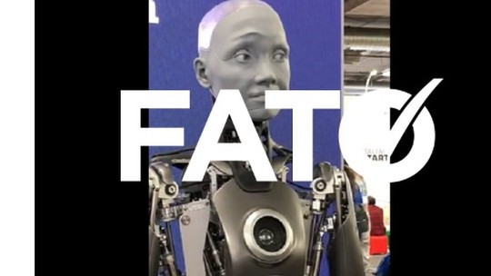 Circulam nas redes sociais vídeos que mostram um robô humanoide realista interagindo com humanos em uma feira de tecnologia. Ele tem um rosto parecido com o humano e é capaz de simular gestos e expressões. É #FATO.