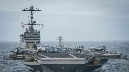 Circula nas redes sociais o vídeo da chegada de um porta-aviões da marinha dos Estados Unidos à costa do Rio – as publicações dizem que o exercício militar aconteceu em 23 de maio de 2025. É #FAKE.