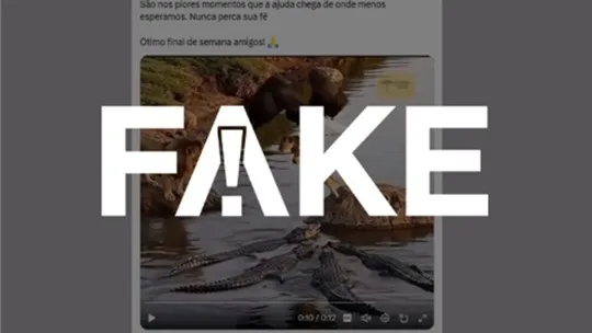 Circula nas redes sociais um vídeo que mostra uma águia salvando um filhote de leão cercado por crocodilos. É #FAKE.