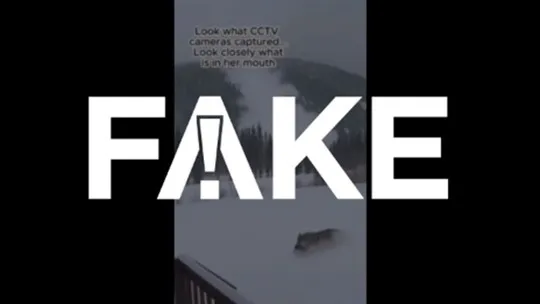 Circula nas redes sociais o vídeo de uma loba supostamente salvando seu filhote durante uma avalanche. É #FAKE.