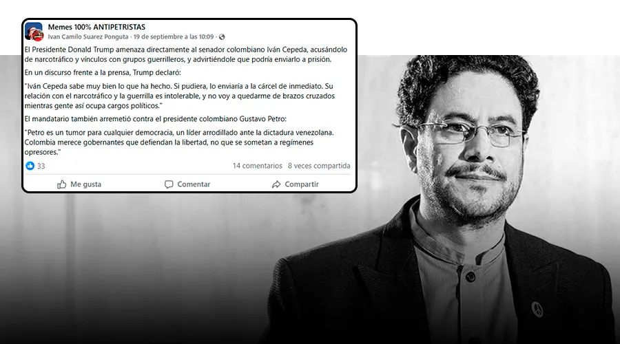Não há evidências de que Trump tenha feito tais declarações. Esta é mais uma desinformação que tenta vincular Cepeda ao tráfico de drogas ou a grupos armados ilegais, uma narrativa estigmatizante de longa data contra o congressista de esquerda que ganhou força com sua candidatura à Câmara dos Representantes de Nariño.