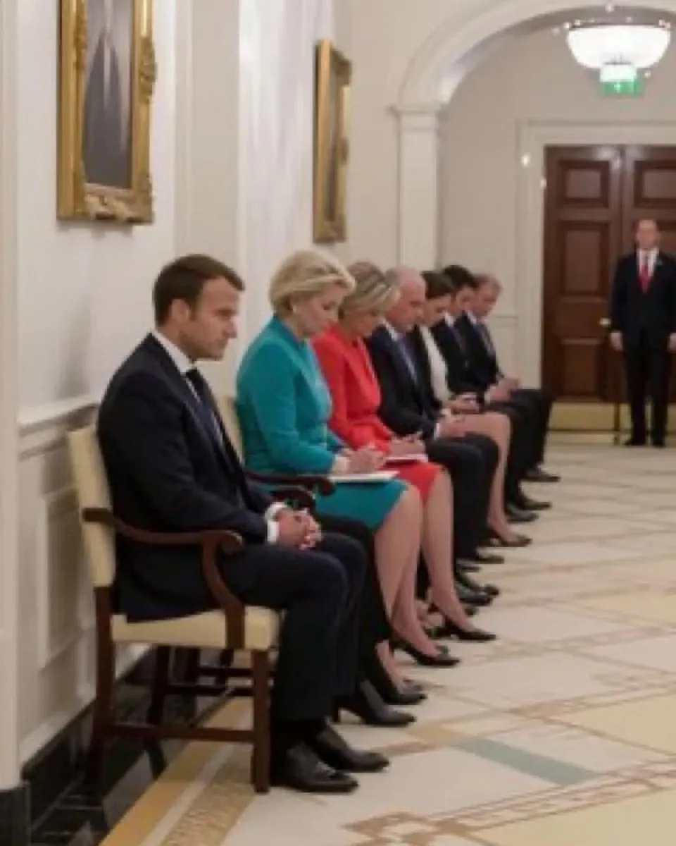 Foi gerada por IA a imagem que supostamente mostra líderes europeus como Emmanuel Macron e Ursula von der Leyen sentados em um corredor da Casa Branca à espera de Donald Trump.