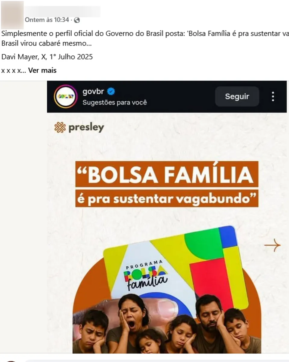 Posts nas redes têm tirado de contexto uma publicação institucional feita pelo governo em junho para alegar que os beneficiários do Bolsa Família teriam sido chamados de “vagabundos”. As peças de desinformação ignoram que: