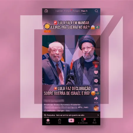 Post com vídeo narrado por inteligência artificial inventa declarações do presidente brasileiro.O presidente Luiz Inácio Lula da Silva (PT) não falou em enviar soldados para o Irã ou mencionou apoio bélico ao país na guerra contra Israel. Vídeo narrado por inteligência artificial afirma que o mandatário teria afirmado em “coletiva tensa” que o Brasil pode apoiar o Irã com envio de tropas, mas não há registro dessa fala nas coletivas e discursos de Lula sobre o conflito.