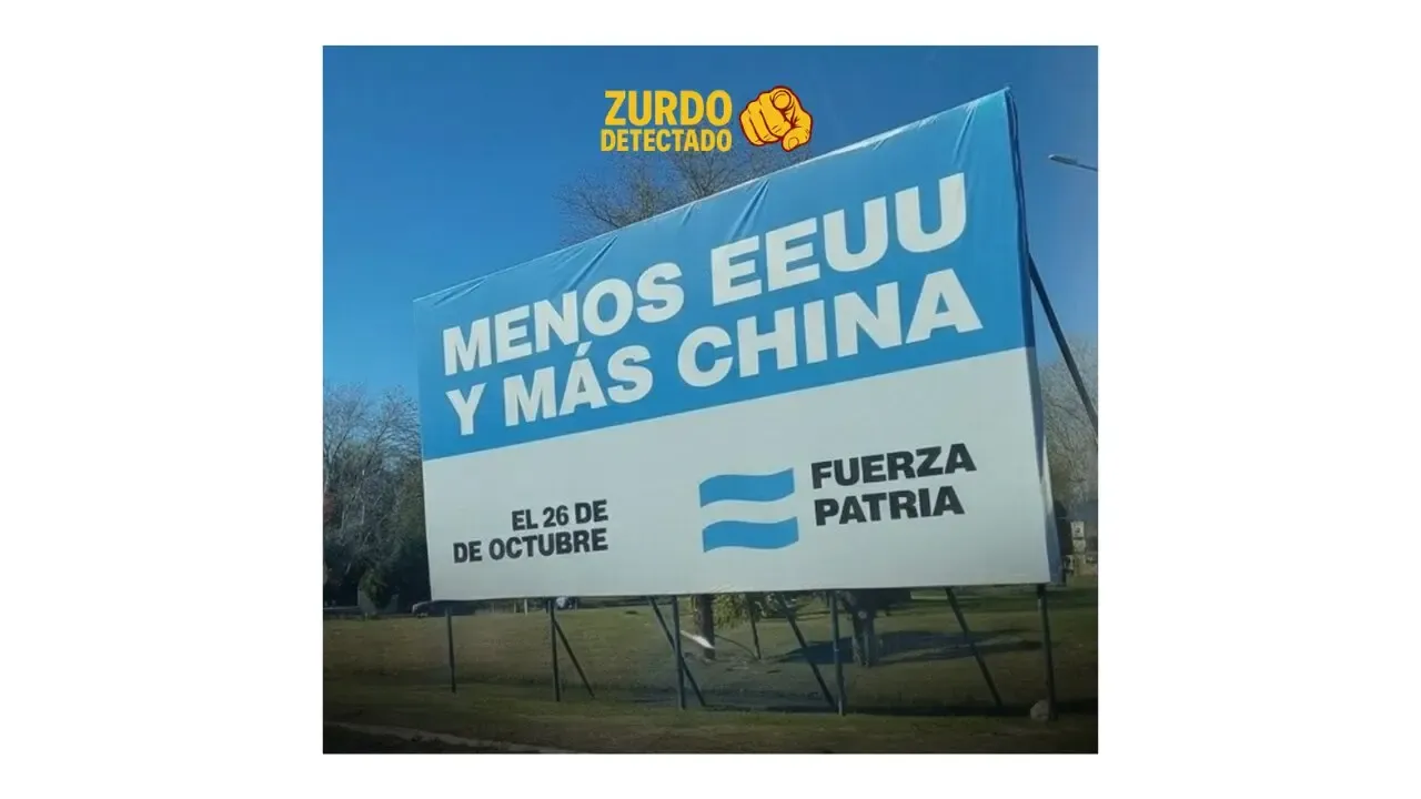 Depois que Javier Milei se encontrou com Donald Trump nos Estados Unidos, uma imagem de um outdoor do Fuerza Patria em uma rua pública começou a circular nas redes sociais, com os dizeres: “Menos Estados Unidos e mais China. Em 26 de outubro, Fuerza Patria”.