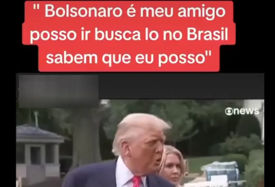 Não é verdade que o presidente dos Estados Unidos, Donald Trump, disse que o ex-presidente Jair Bolsonaro (PL) é seu amigo nem que pode vir buscá-lo no Brasil. O vídeo que circula com essa alegação traz uma legenda errada. Não há registros públicos de que Trump tenha dito isso em outras ocasiões.