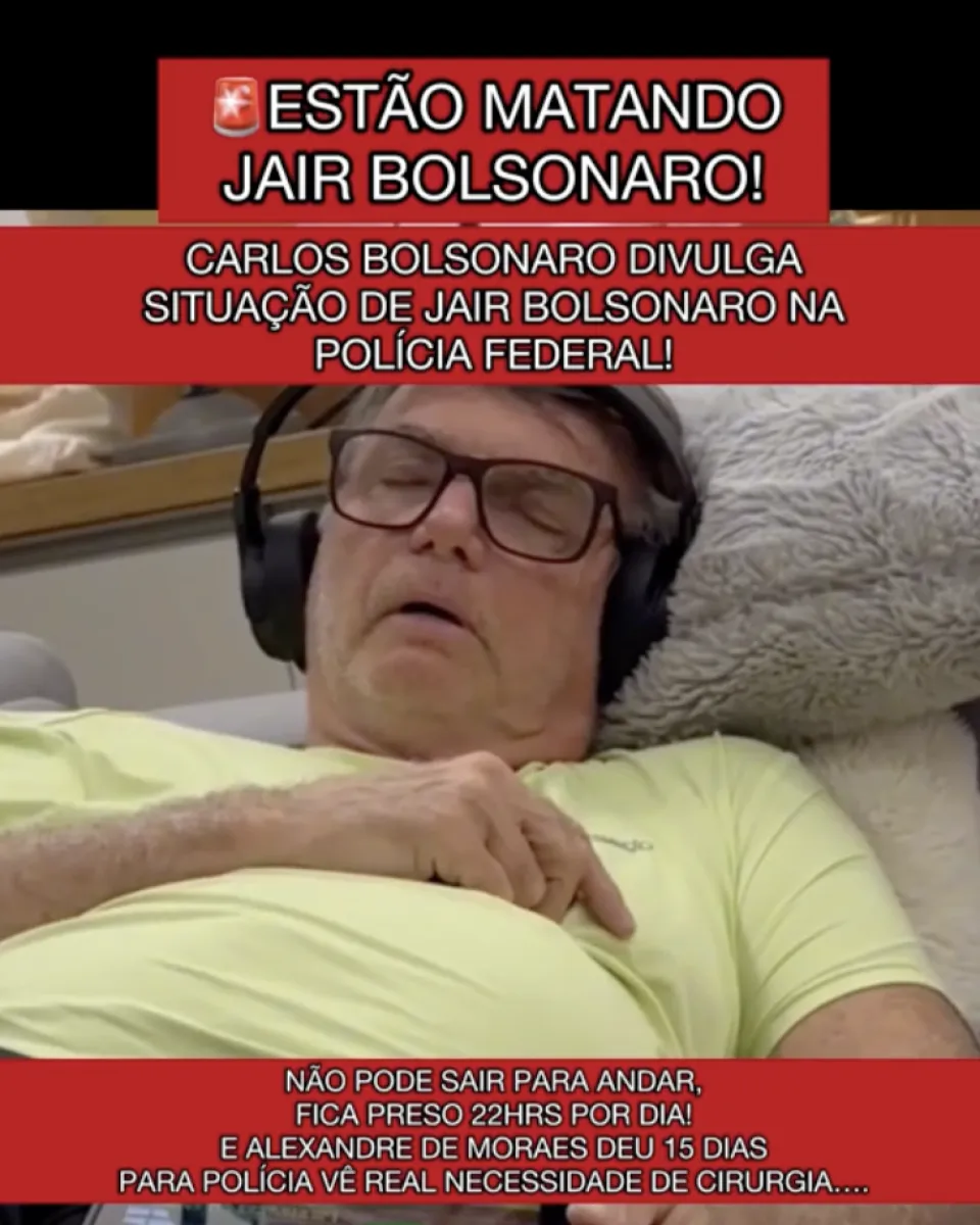 Não é verdade que o ex-vereador Carlos Bolsonaro (PL-RJ) publicou nas redes um vídeo que mostra o ex-presidente Jair Bolsonaro (PL) com soluços enquanto dorme na sala em que está preso na Superintendência da Polícia Federal em Brasília. Apesar de não apontar a data exata da gravação na publicação original, o filho afirma na legenda do post que o registro é anterior à prisão do pai.