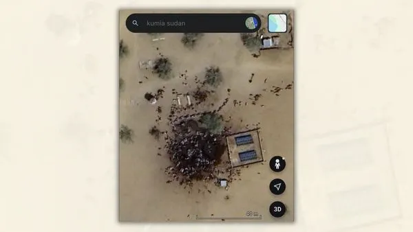 No início de novembro de 2025, uma imagem do Google Earth começou a circular nas redes sociais, supostamente mostrando pilhas de corpos humanos em poças de sangue em Kumia, no Sudão.