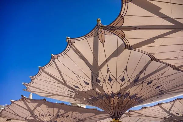 Em junho de 2025, imagens no  TikTok e no  YouTube mostraram fileiras de grandes guarda-sóis mecânicos abrindo-se sobre os pedestres, proporcionando-lhes sombra. As legendas desses vídeos diziam que se tratava de guarda-sóis de alta tecnologia em Medina, na Arábia Saudita, que forneciam sombra aos peregrinos que visitavam a Mesquita de An-Nabawi, também conhecida como Mesquita do Profeta, um dos locais mais sagrados para os muçulmanos em todo o mundo.