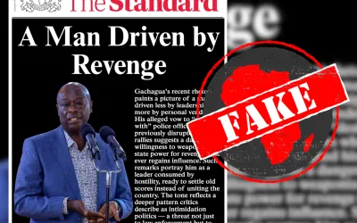 RESUMINDO: Uma imagem que circula online parece mostrar a edição de 11 de dezembro de 2025 do jornal Standard, com a manchete “Um homem movido pela vingança”, referindo-se ao ex-vice-presidente Rigathi Gachagua. Mas a capa foi adulterada.