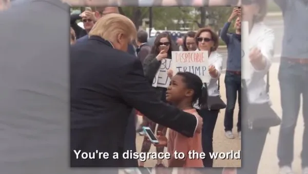 No final de junho de 2025, um vídeo que supostamente mostrava uma jovem chamando o presidente dos EUA, Donald Trump, de “uma vergonha para o mundo” se espalhou nas redes sociais.