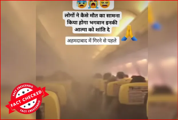 Um vídeo de fumaça dentro de uma aeronave viralizou nas redes sociais, alegando que se tratava do voo da Air India que caiu em Ahmedabad recentemente.
